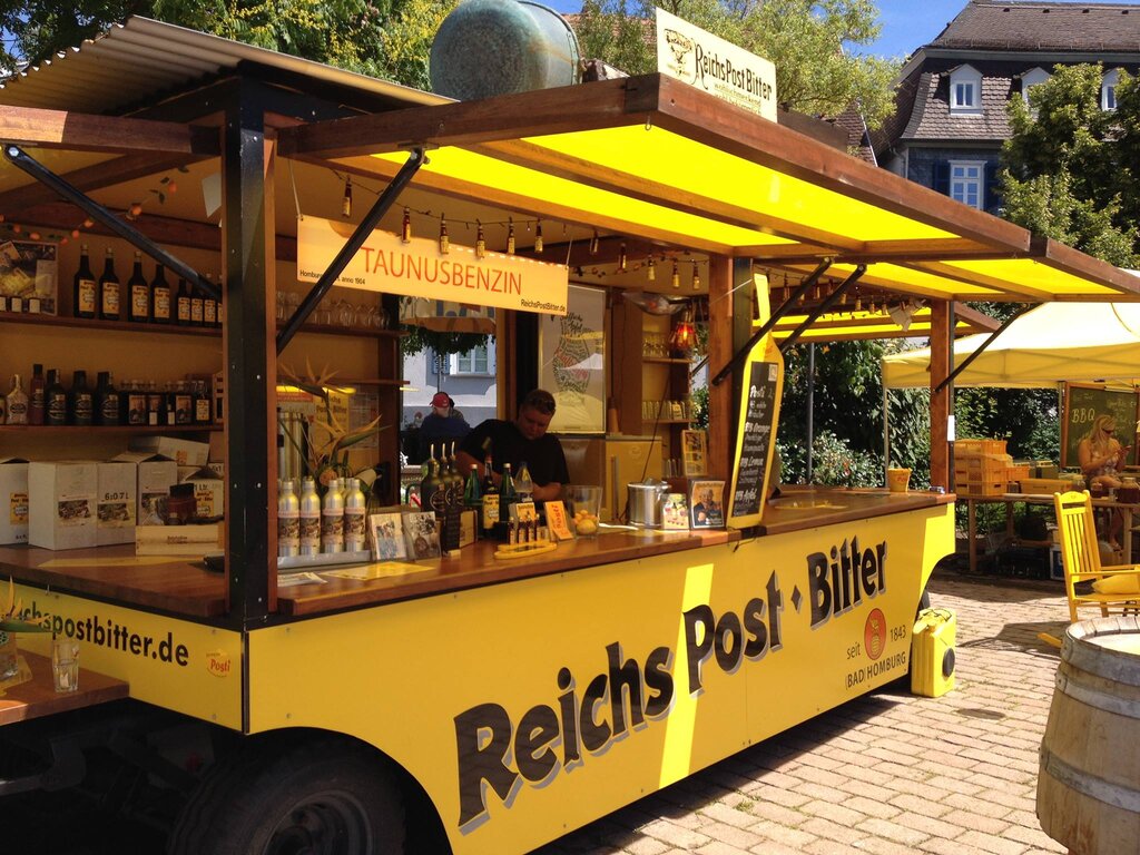ReichPost Bitter mit Kumquats und Orange ReichsPost Bitter Lemon Bad Homburger Apotheker GIN Fassgereifte Spezialitäten Am ReichsPost Bitter Wagon in der Louisenstrasse gegenüber dem Waisenhausplatz